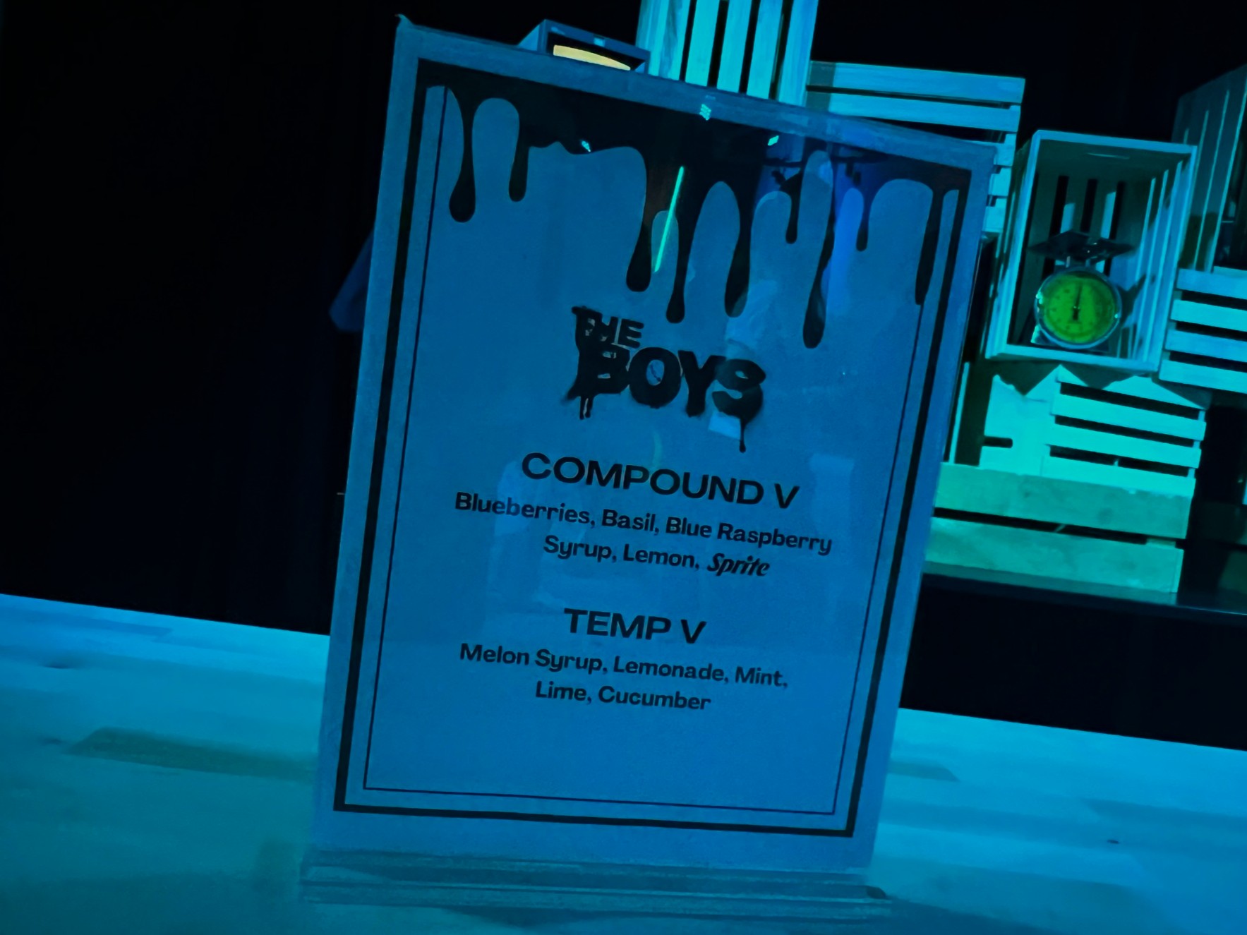 However, the experience revealed an unexpected twist. Hidden in the “Employees Only” room, visitors could become their own honorary members of The Boys, taking a stand against the evil Vought empire. Here, guests could also get their hands on some of the show’s signature “Compound V” & “Temp-V, ” which have been converted to non-alcoholic drinks as opposed to a super-power-granting liquid.